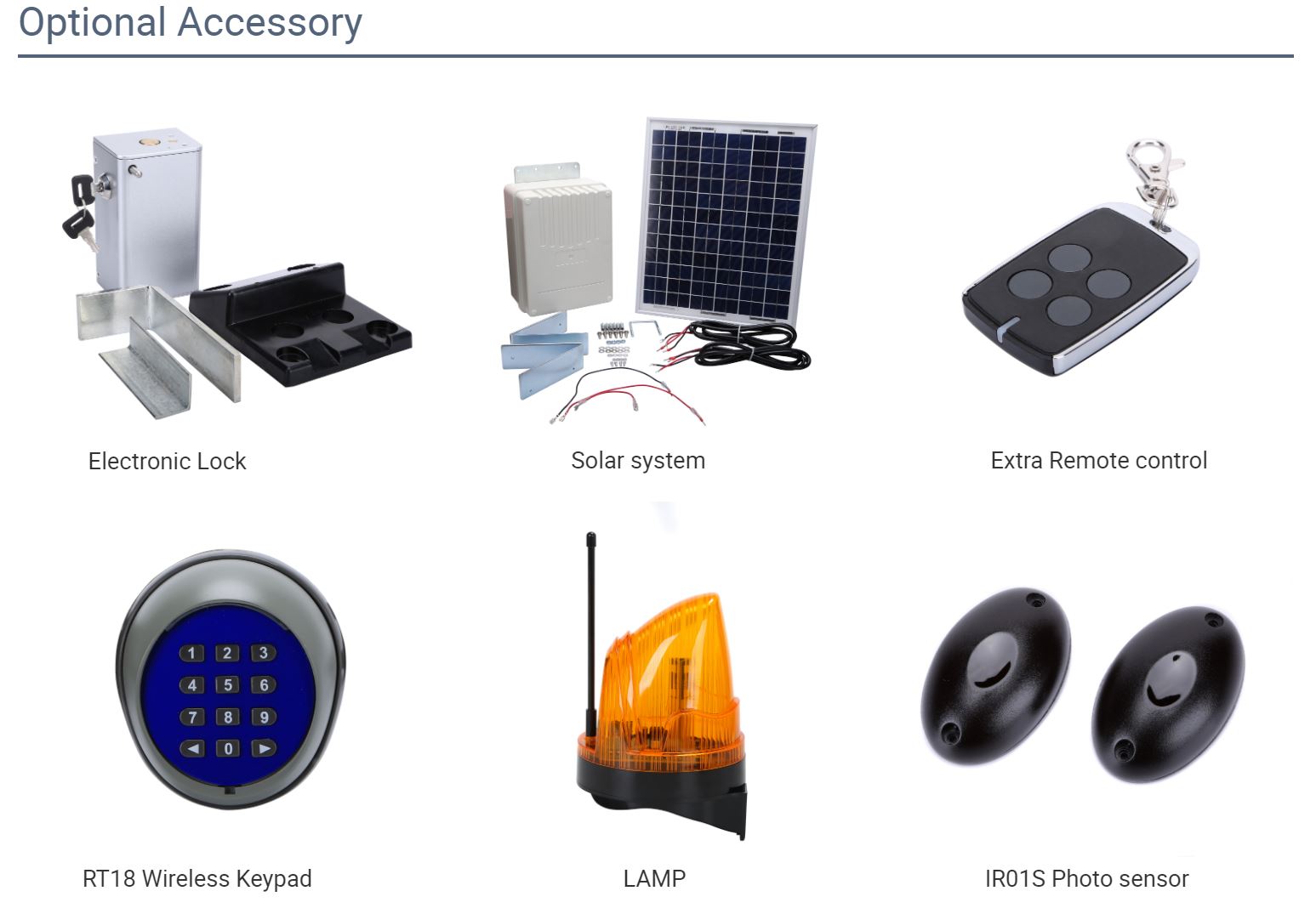 Gate moving speed | 18~22 second per 90 (approx) | |